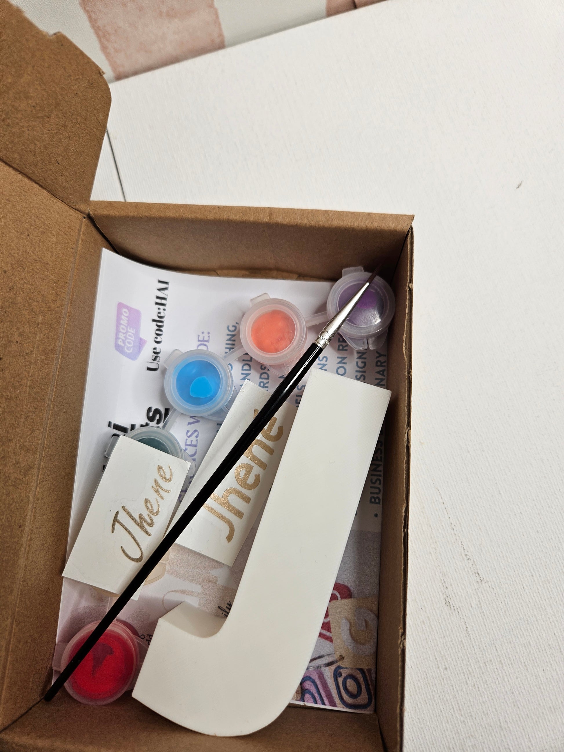 Create a personalized and unique touch to your home decor with our Paint Your Own Initial kit! This kit includes a 10cm tall initial letter, paint brush, instruction sheet, and a personalized name vinyl. Once painted, add your name for a special touch and hang in a shadow box frame or adhere it to your wall using safe adhesive.